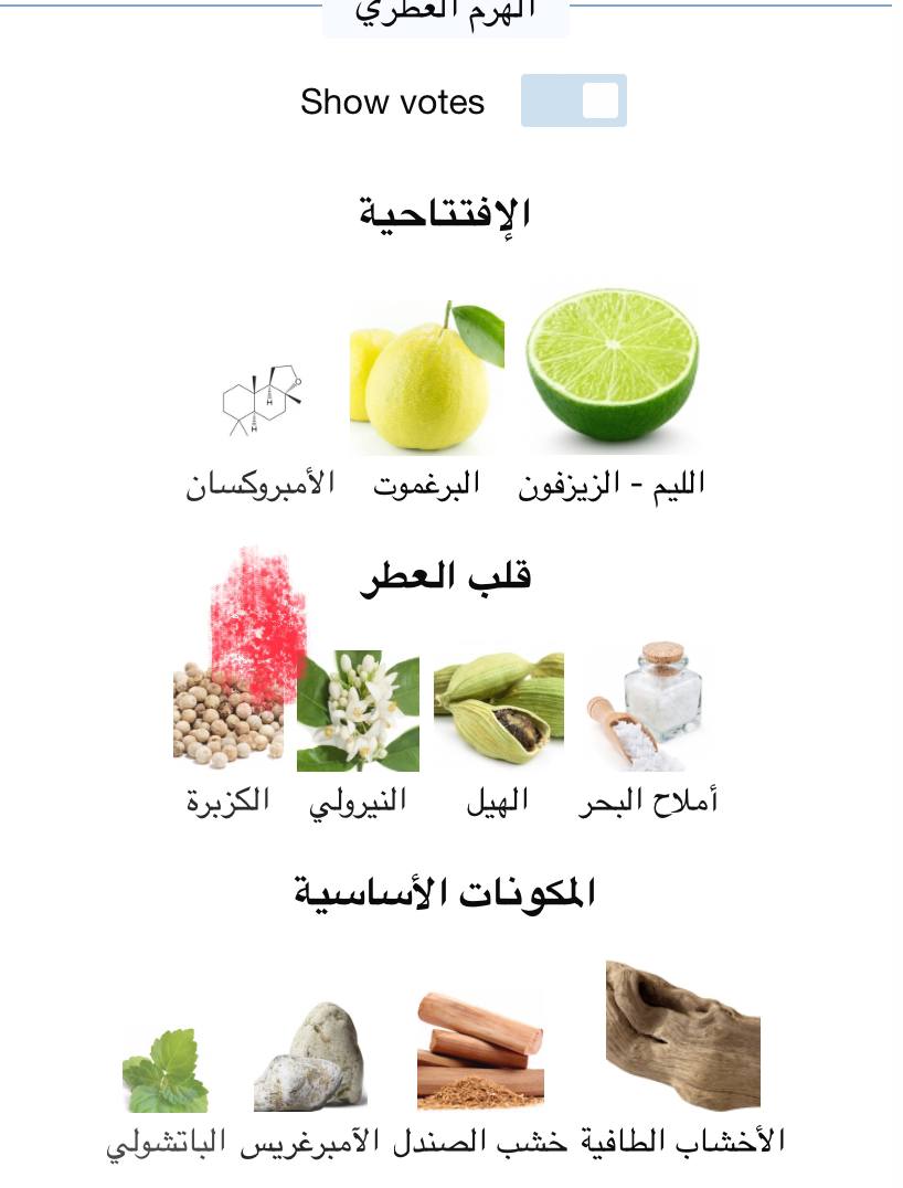 - الحمضيات/خشبي/اروماتك/تابلي دافئ/العنبر/مالح/بحري/تابلي منعش
