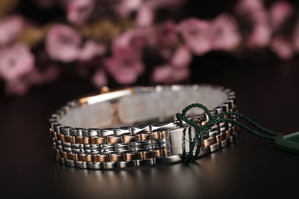 - لون الحزام فضي مطعم بالنحاسي