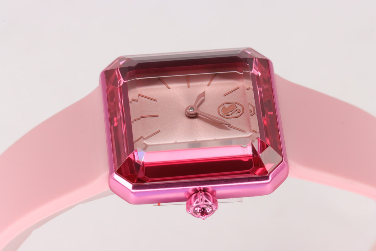 - هيكل الساعة مصنوع من مادة الكريستال والالمنيوم