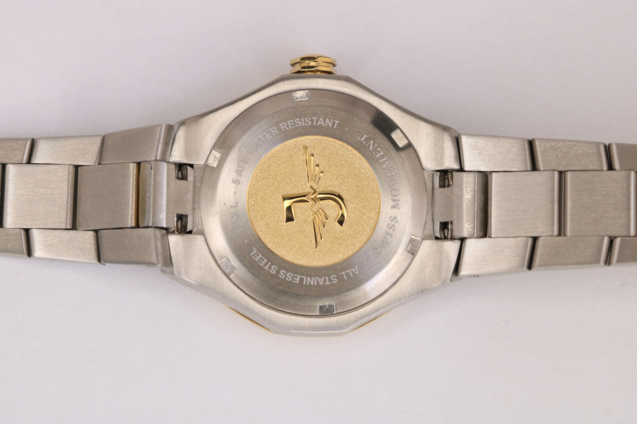 - لون الحزام فضي مطعم بالذهبي