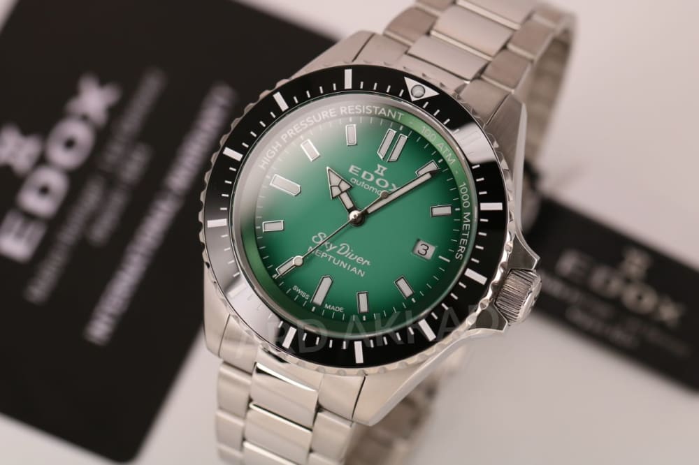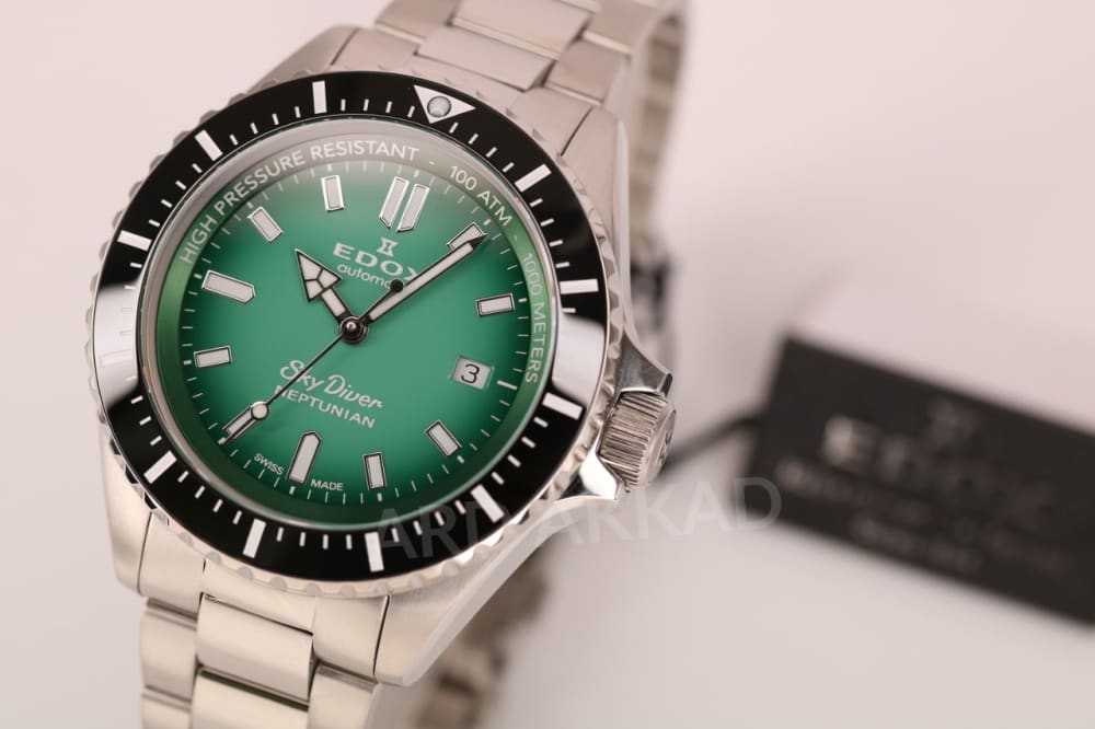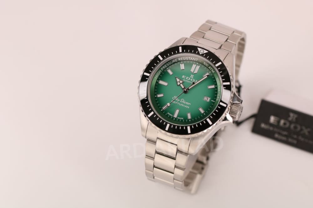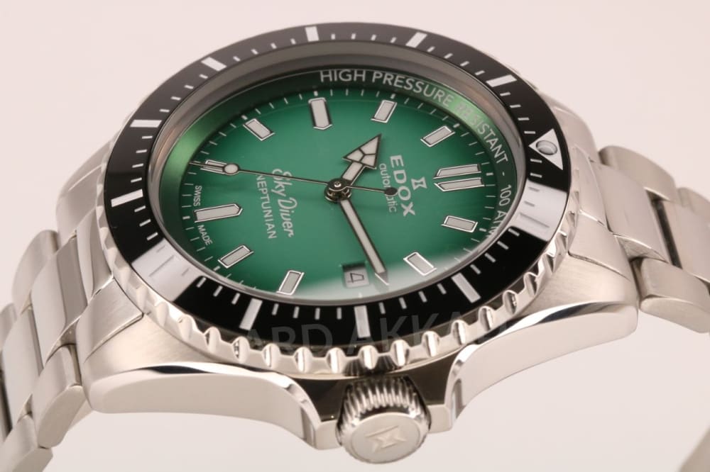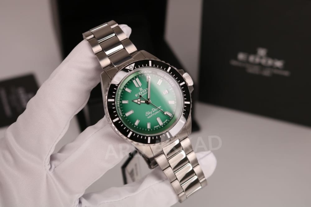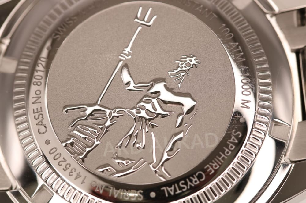 • يوجد على ظهر الساعة ختم شخصية ملك البحر في الاساطير الرومانية