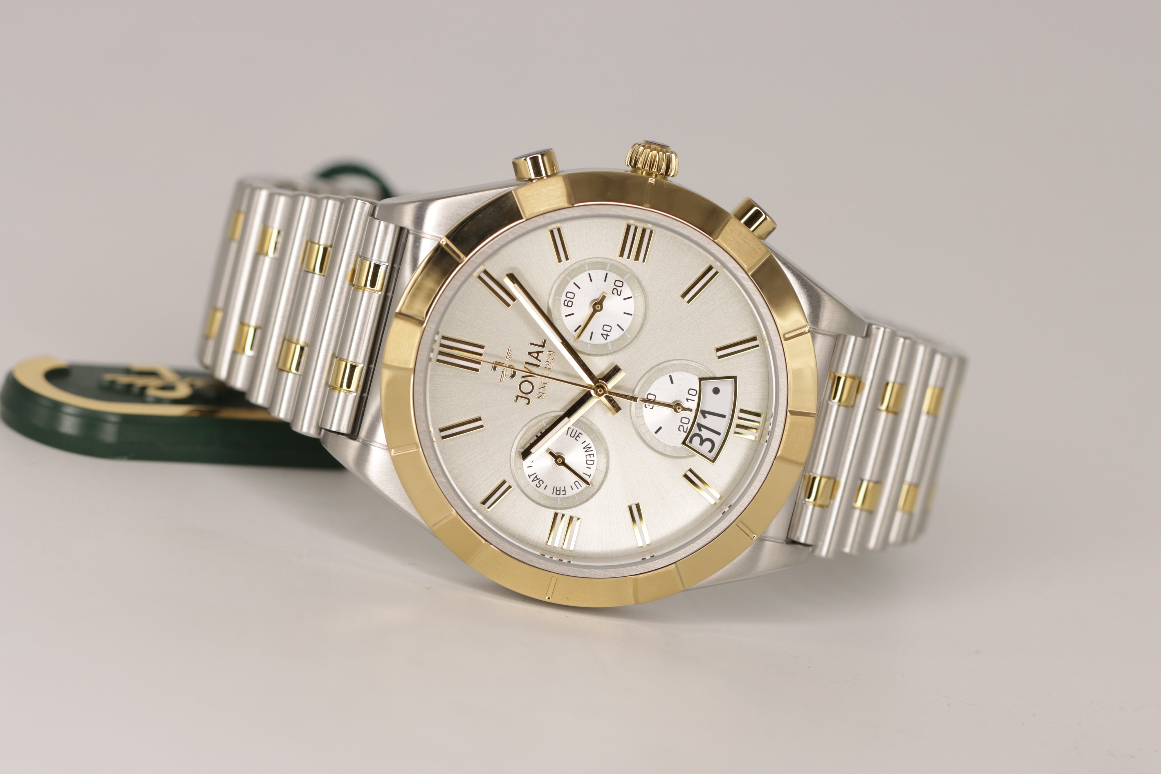 - لون الحزام فضي مطعم بالذهبي