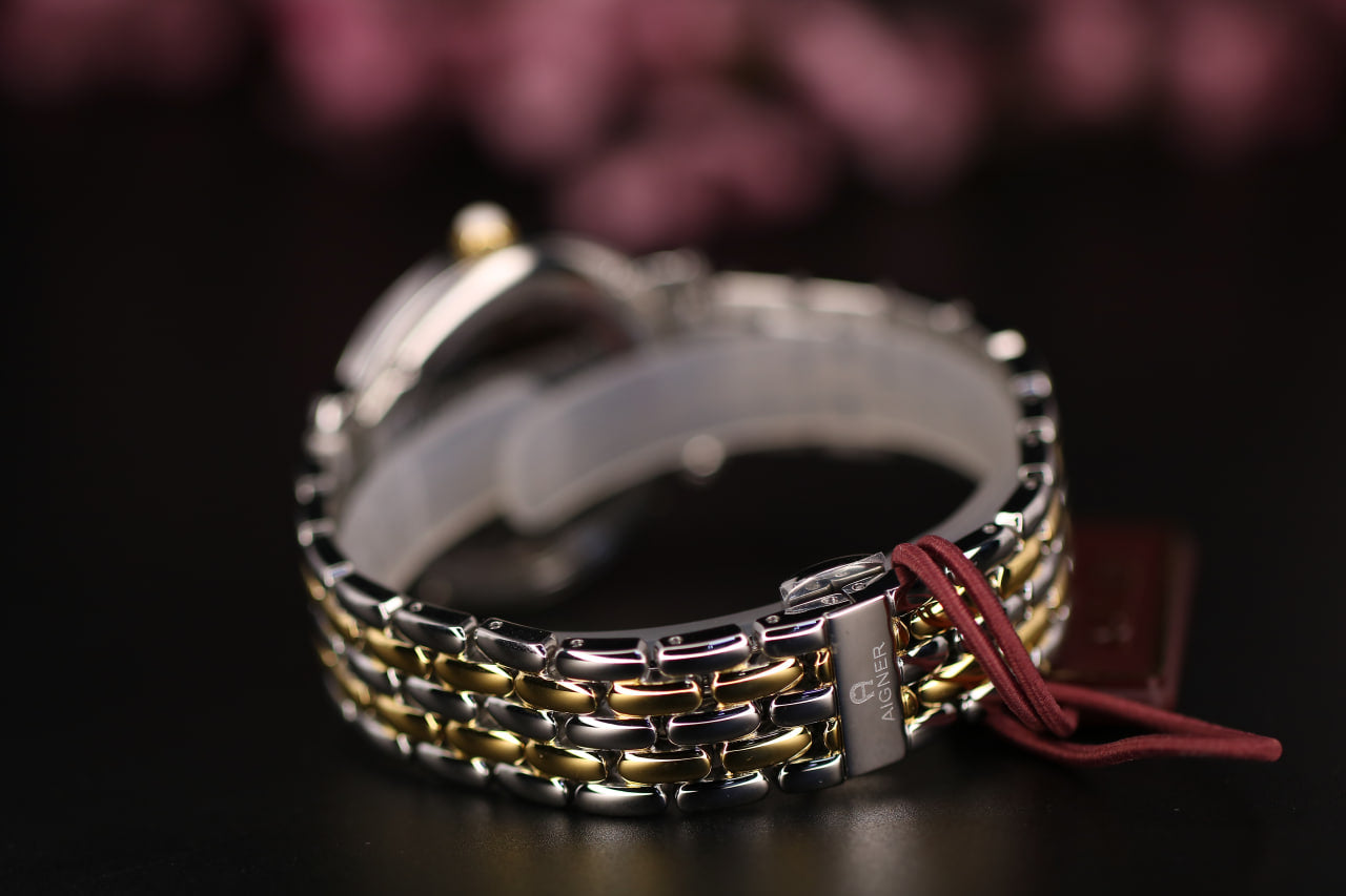 - لون الحزام فضي مطعم بالذهبي