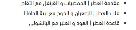 - قلب العطر: الزعفران. الخوخ. نبتة الدافانا