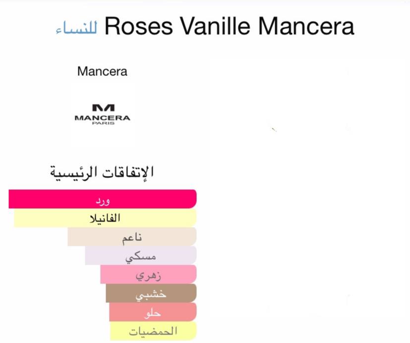 - ورد/الفانيلا/ناعم/مسكي/زهري/خشبي/حلو/الحمضيات
