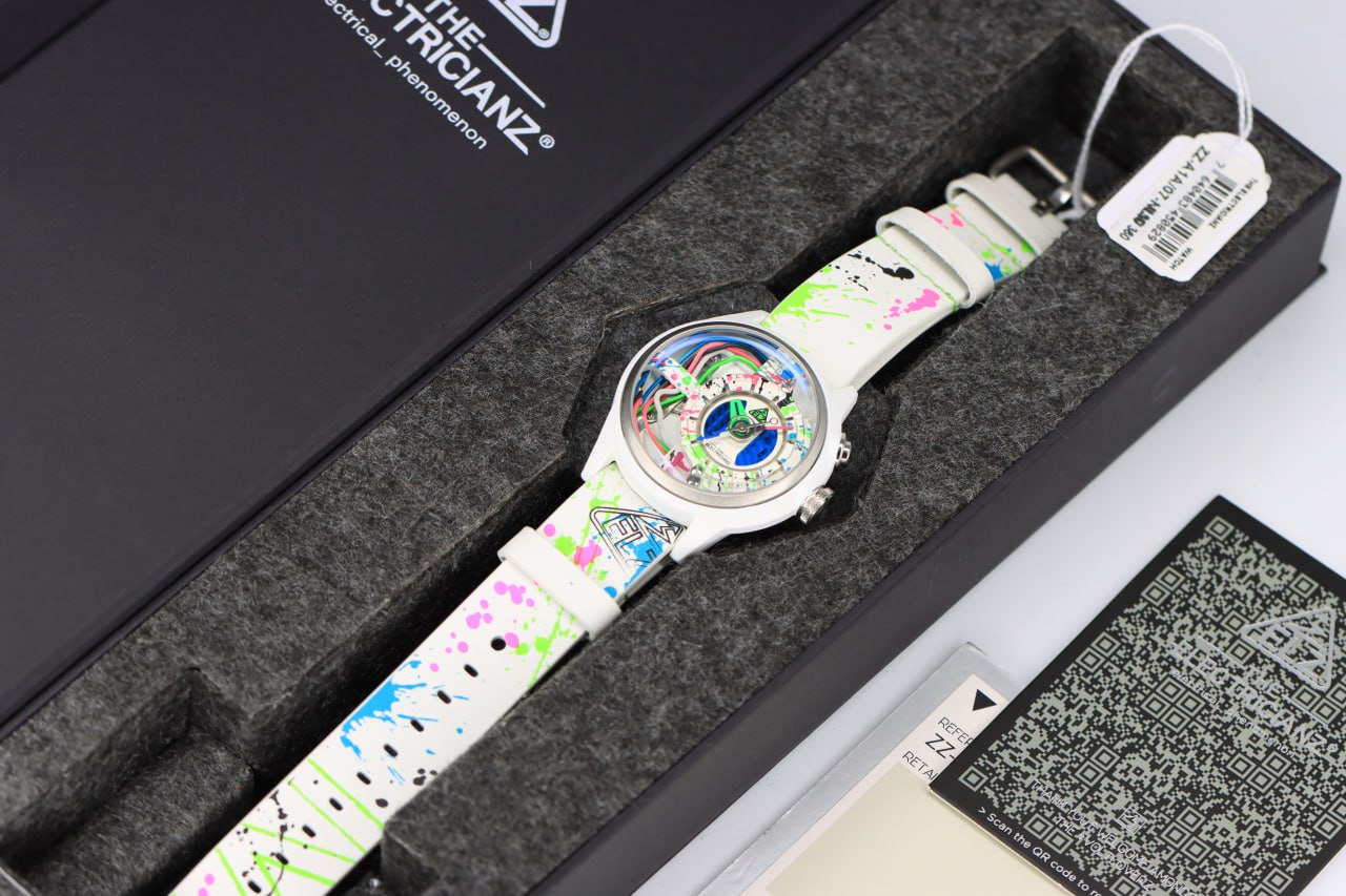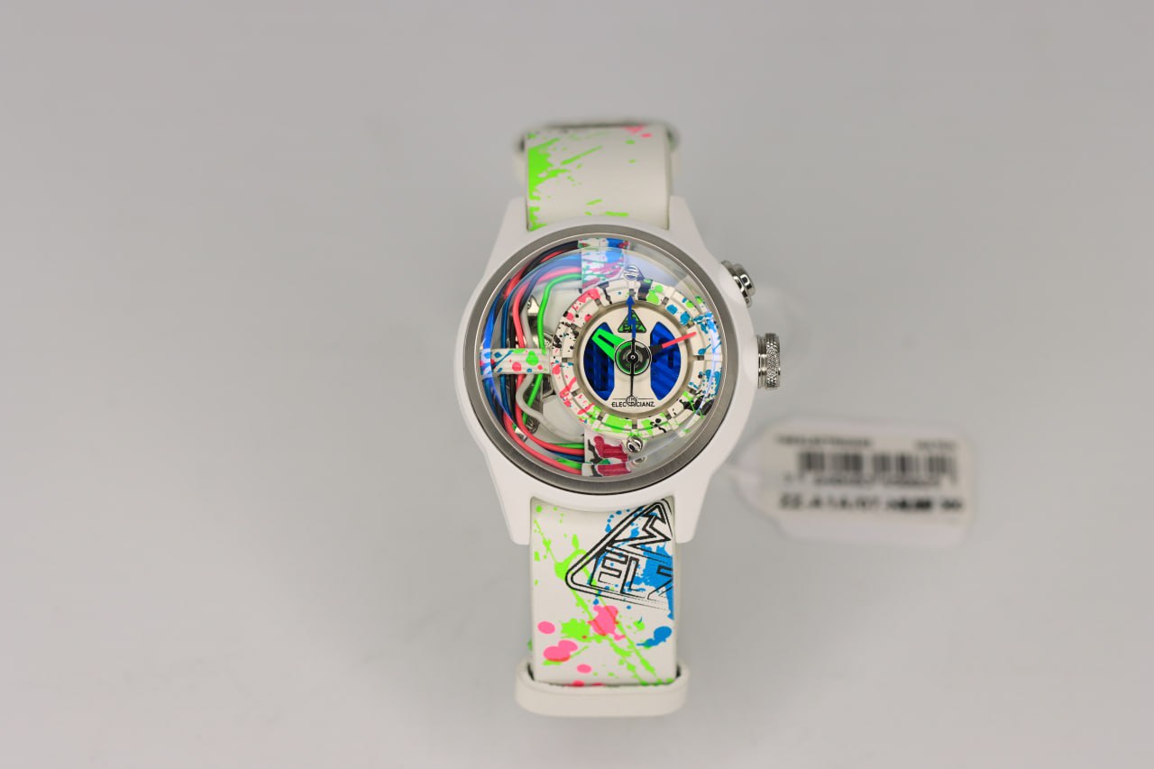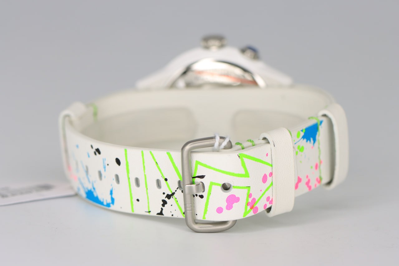 - لون الحزام ابيض مطعم بألوان نيون