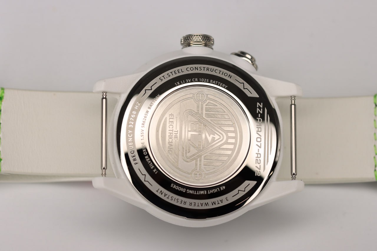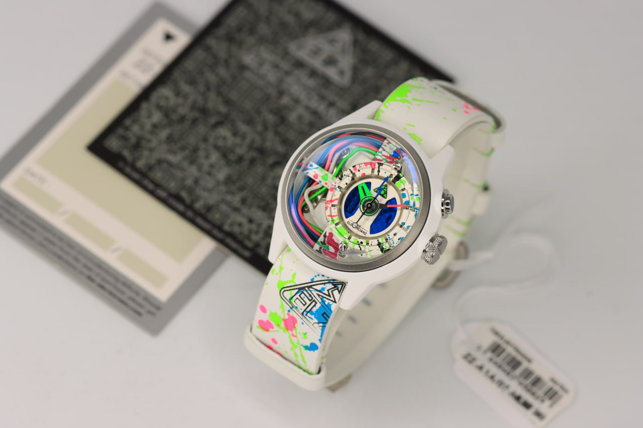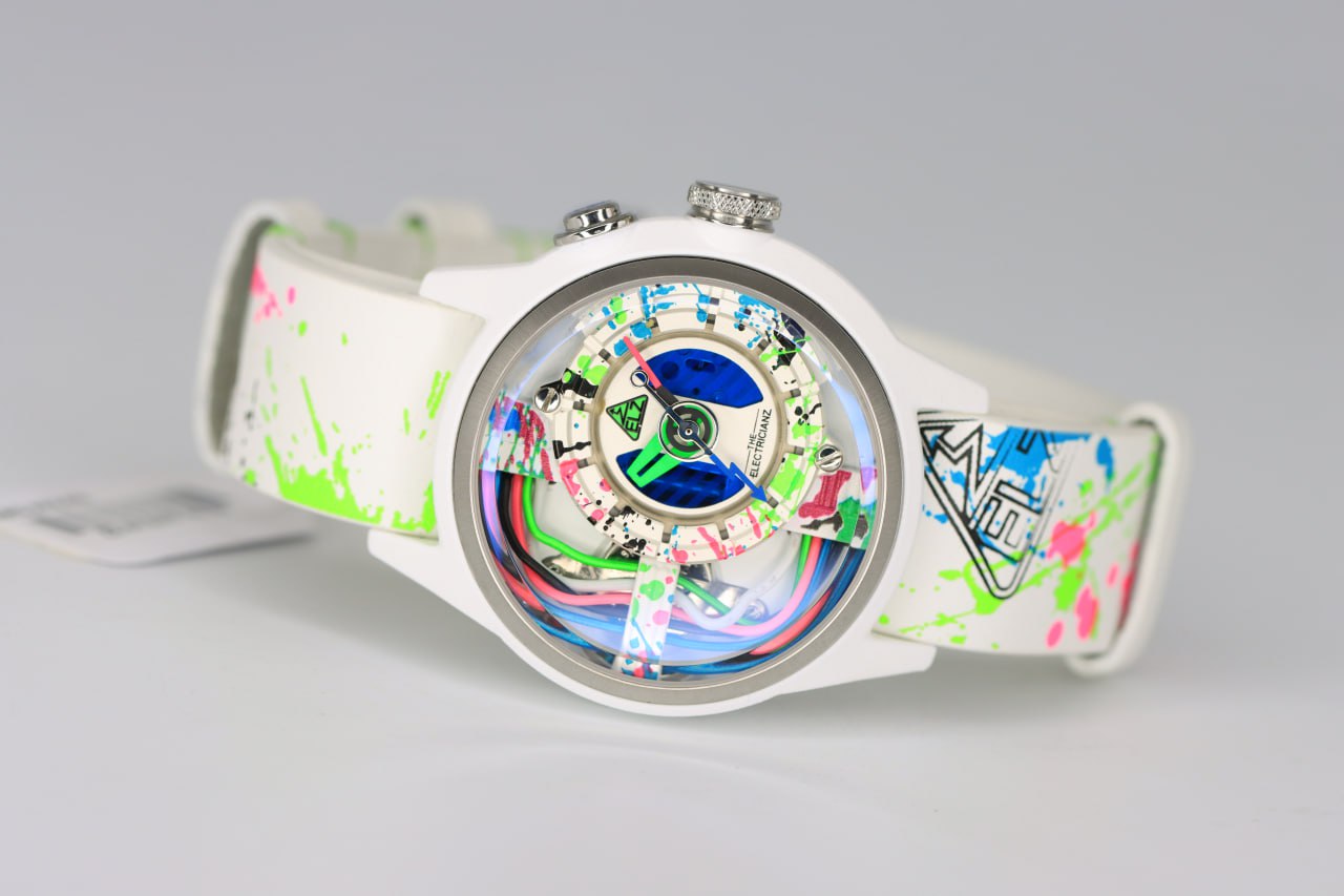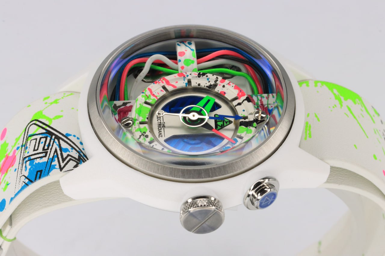 - لون الحزام ابيض مطعم بألوان نيون